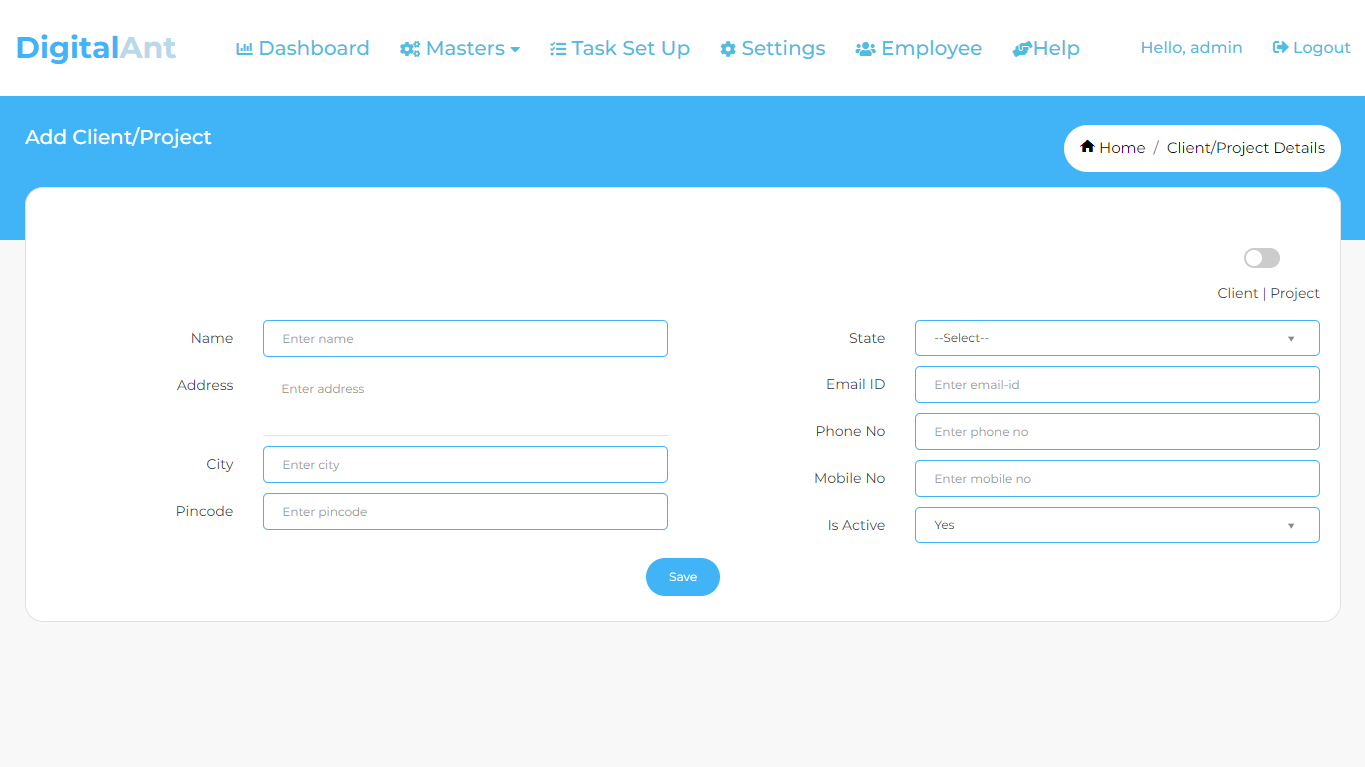 Create a list of all your clients by adding them in the Client module. We can record some basic details of each client for our records like name, address etc