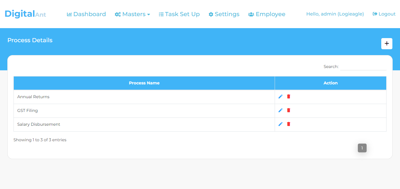 Add the name of multiple task to be performed for each of your clients. Example : A chartered accountant will have GST filing , Salary payment etc as tasks to be performed on regular basis. Process tab helps capture all your recurrsive tasks at one place.